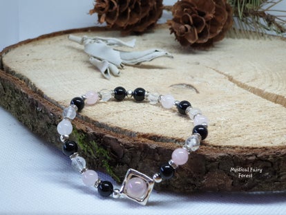 Bracelet "Amour, Paix et conscience" Obsidienne dorée, Kunzite, Quartz rose, Quartz Aqua Aura