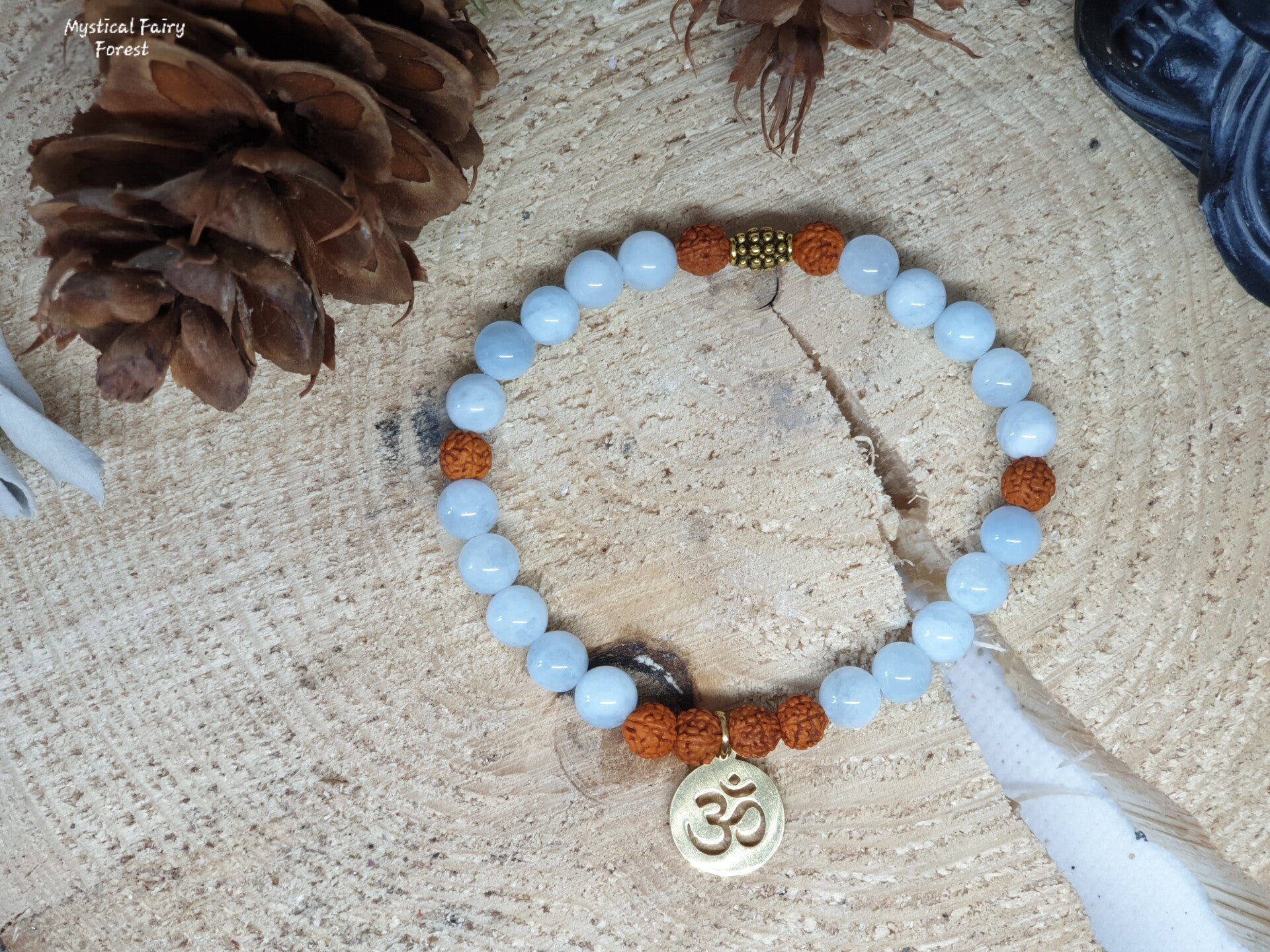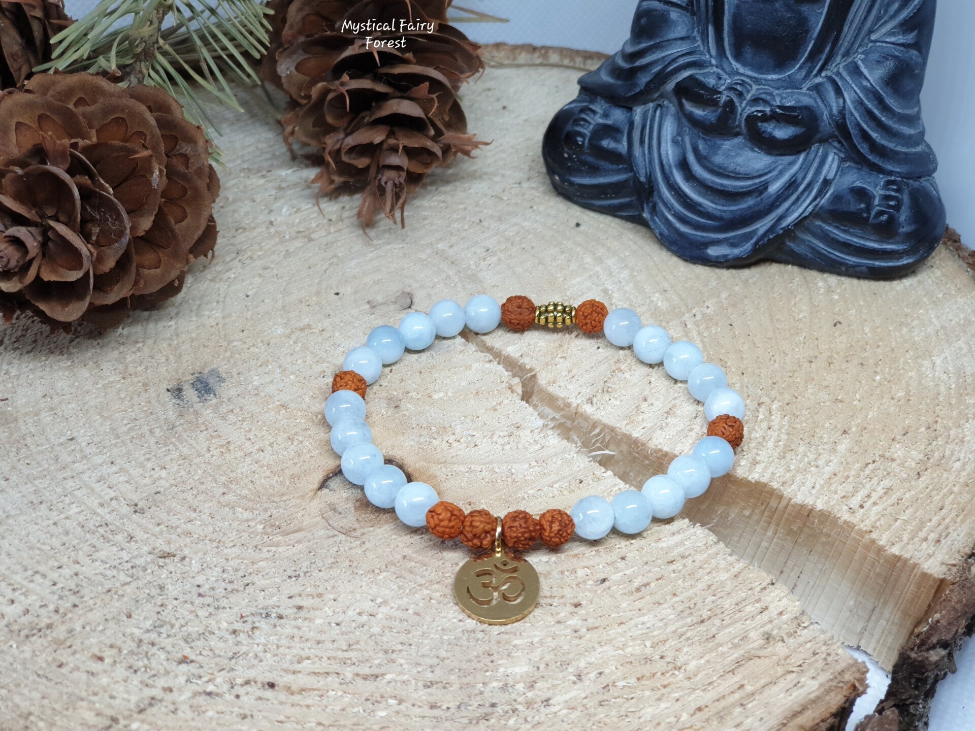 Bracelet réalisé avec des graines naturelles de "Rudraksha" de diamètre 6mm et des perles naturelles "d'Aigue Marine" de diamètre 6mm.
