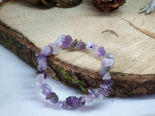 Bracelet élastique réalisé avec des pierres naturelles d'Améthyste Rubanée du Brésil.