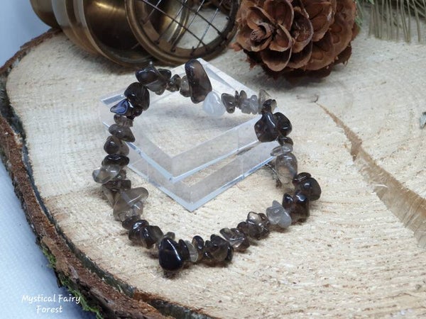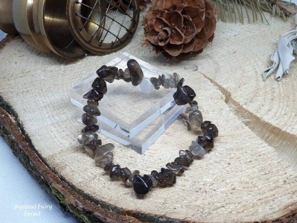 Bracelet élastique réalisé avec des pierres naturelles de Cristal de Roche Fumé (Quartz Fumé) d'origine États-Unis.