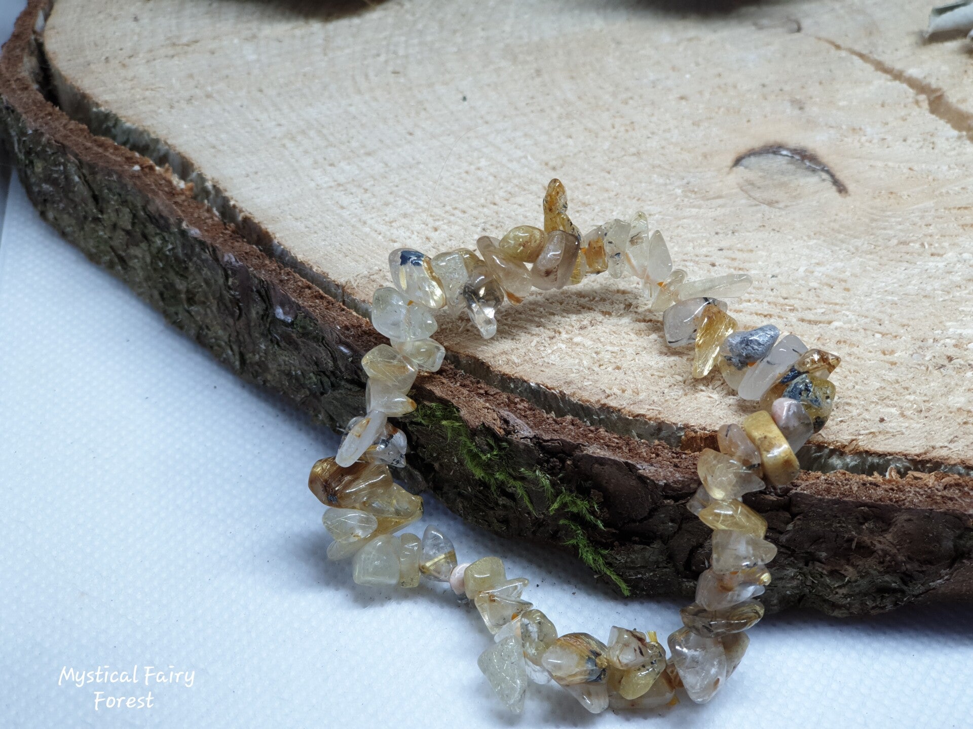 Bracelet élastique réalisé avec des pierres naturelles de Cristal de Roche Rutile (Quartz Rutile) d'origine Brésil.