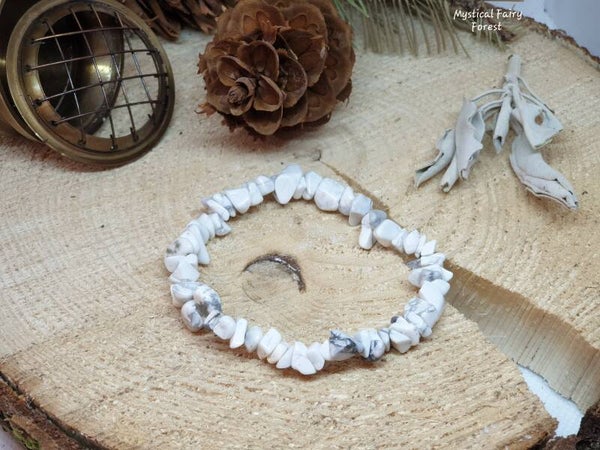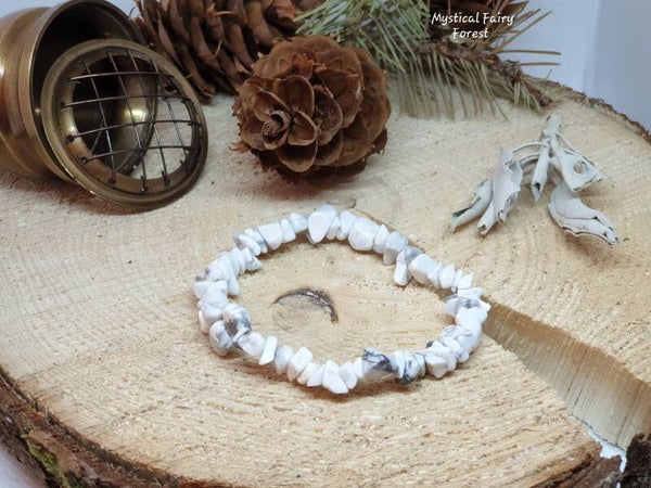 Bracelet élastique réalisé avec des pierres naturelles de Howlite d'origine Zimbabwe.