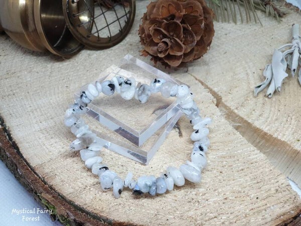 Bracelet élastique réalisé avec des pierres naturelles de Péristérite (Labradorite Blanche) d'origine Inde.