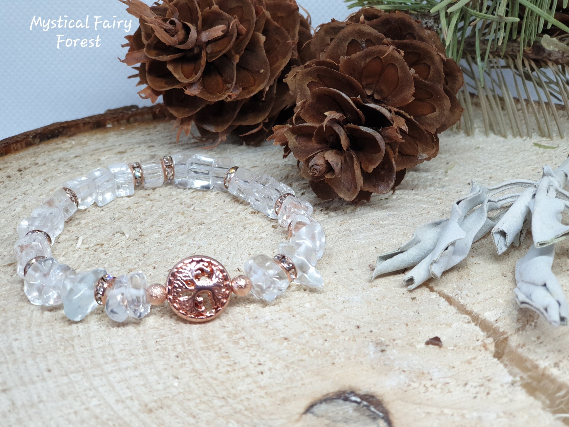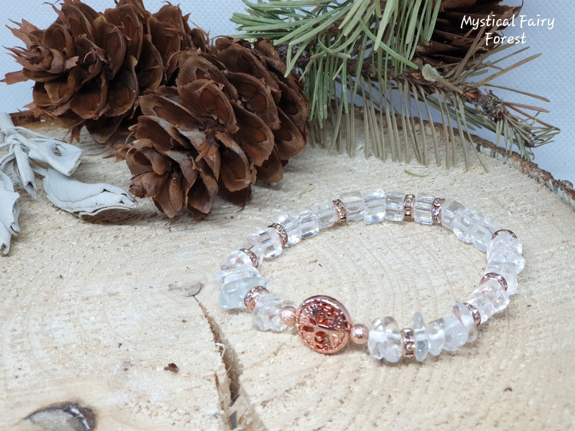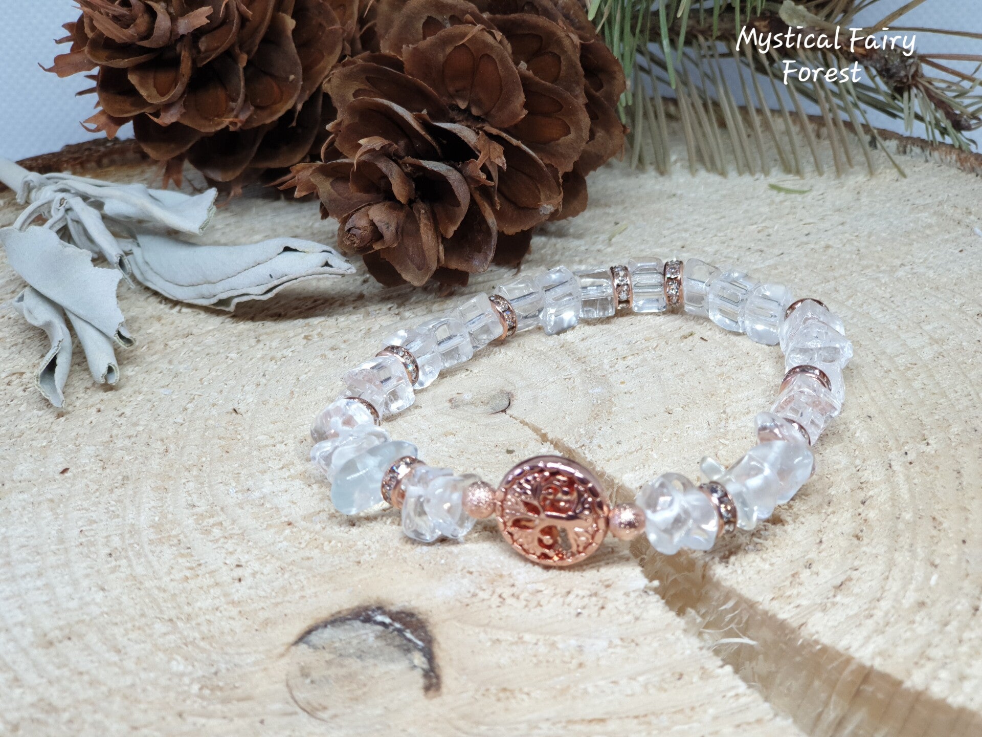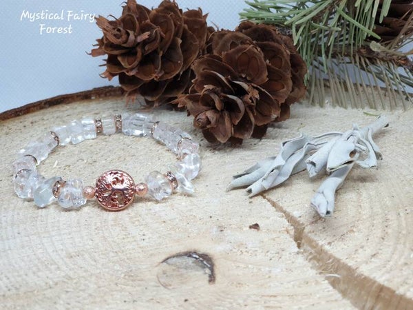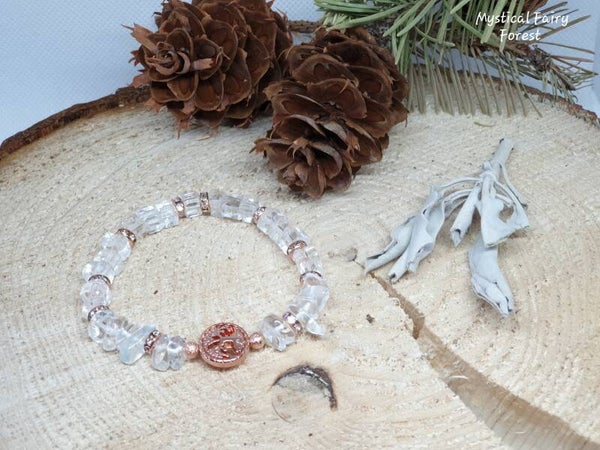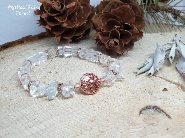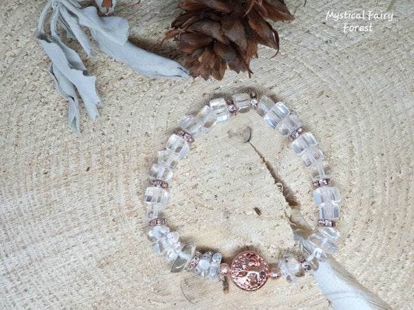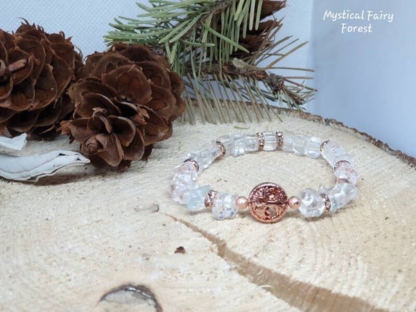 Bracelet de Lithothérapie "Purification" Cristal de Roche et son Arbre de vie en Hématite