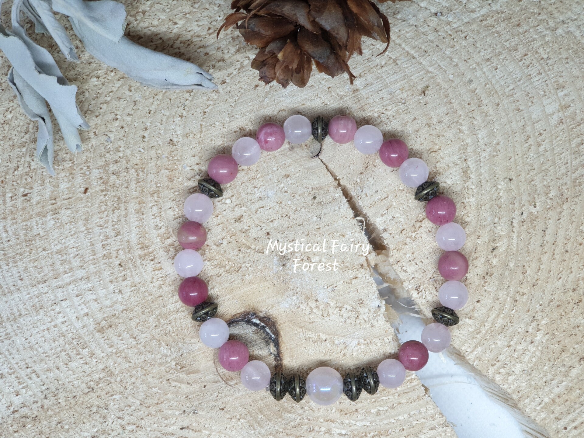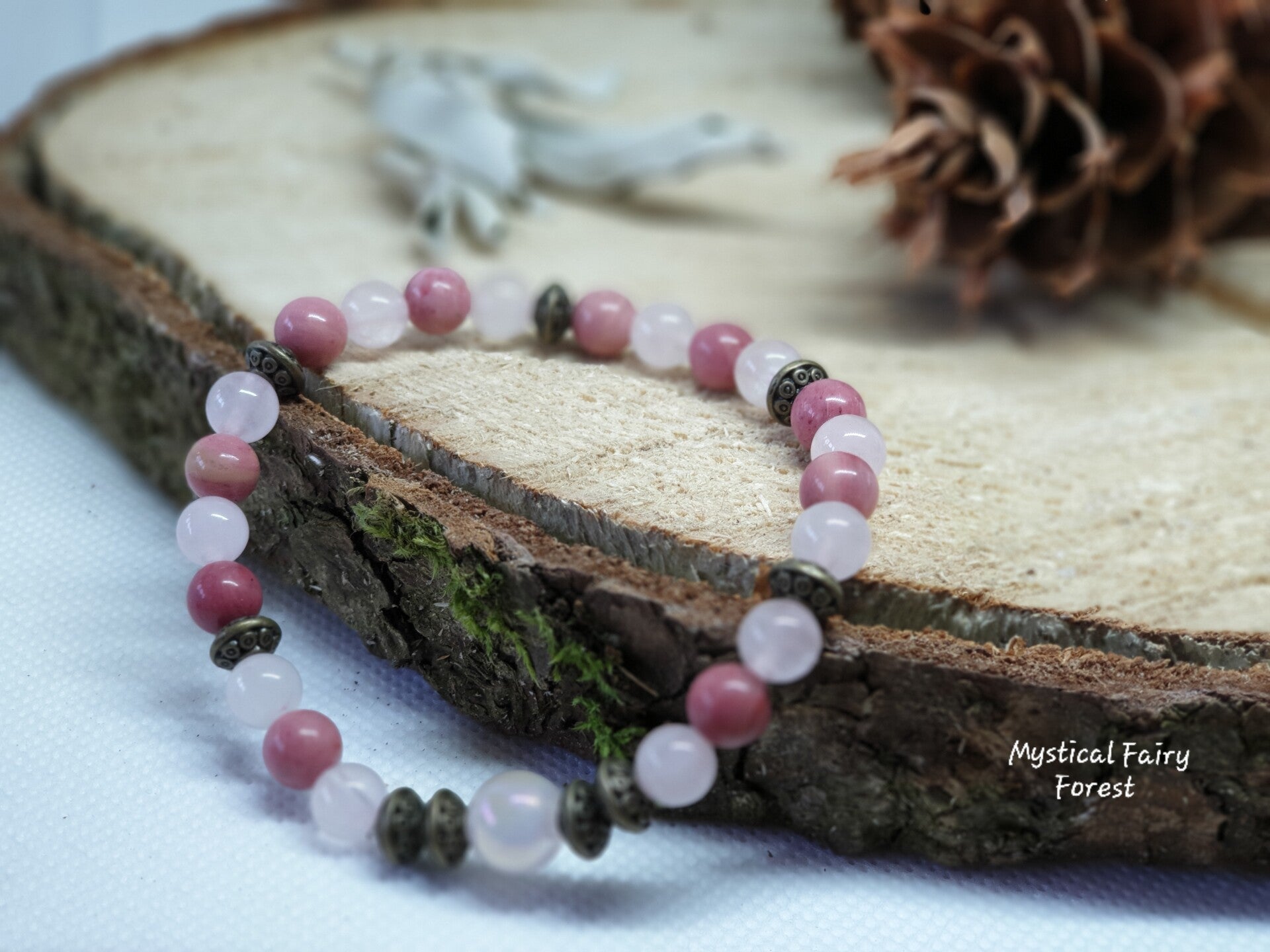 Bracelet "Abondance Amour" Rhodonite, Quartz rose, Quartz Aqua Aura