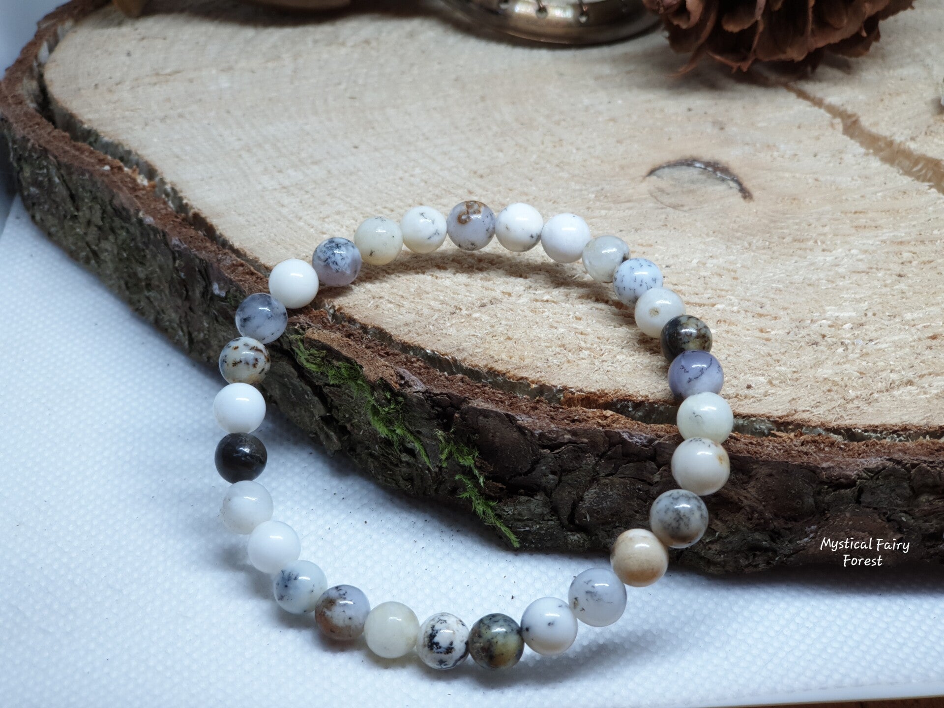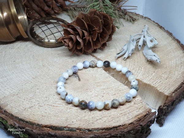 Bracelet élastique réalisé avec des perles naturelles d'Opale Dentrite (Merlinite)