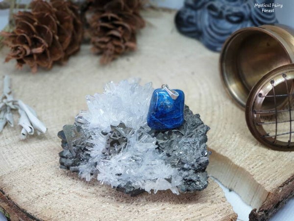 Pendentif réalisé avec des pierres roulées naturelles de Chrysocolle Shattuckite d'origine Pérou.